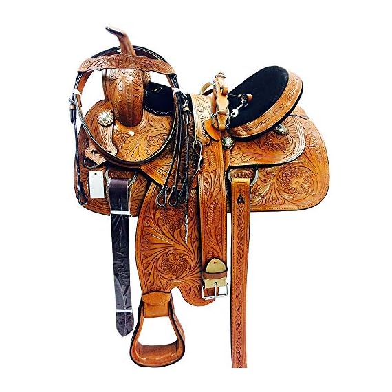 AceRugs All Natural Cowhide Western Leather Horse Saddle Comfy SEAT Pleasure Trail Barrel Racing Hand Tooled Premium Saddle TACK Set Bridle Breast Collar (16)