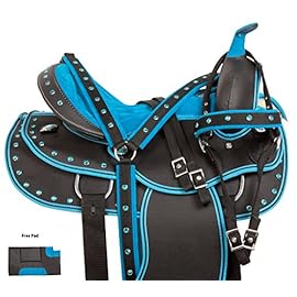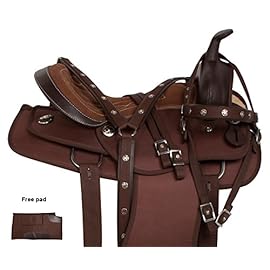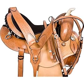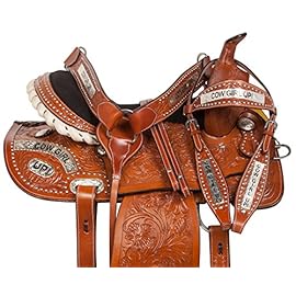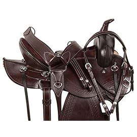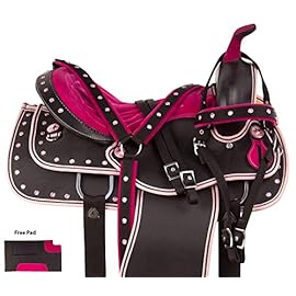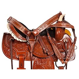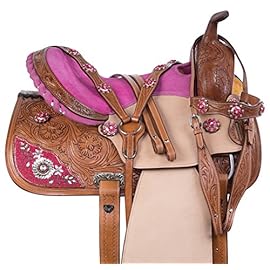 Acerugs create saddles not only for the trail but also for performances. Look at the Rough Out Western Racing Show Horse Saddle. It is made of genuine leather. This beautiful pink saddle has a hand-carved floral pattern and a sophisticated hand-stitched pink cross, which can be seen on the seat and the skirt of the saddle, which makes this set truly unique! This female saddle is an excellent option for performance.