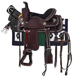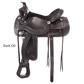 There are partial tooling and Tough-1 quick-change buckles with complete fullback cinch, latigo and off billet. Flex tree adjusts automatically to a broad, narrow or regular horse. All swing and twist movements, measurements and parameters are automatically adjusted. Endurance riders test them. The saddles save the horses back from soring by ill-fitting standard trees. The area where the seat touches the horse is isolated from the stiffness of the saddle tree Adjusts to the physique of almost any horse.
