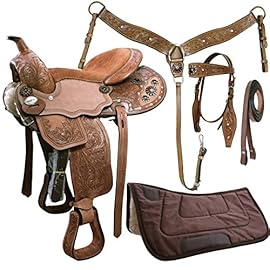 If you want a unique, comfortable and high-quality saddle at a low price, then this is Tahoe Tack Western Saddle. Tahoe Tack brand makes saddles in different colors with matching Headstall, Split reins, Breast collar, and a brown canvas Saddle Pad, so it has with everything to get started riding.